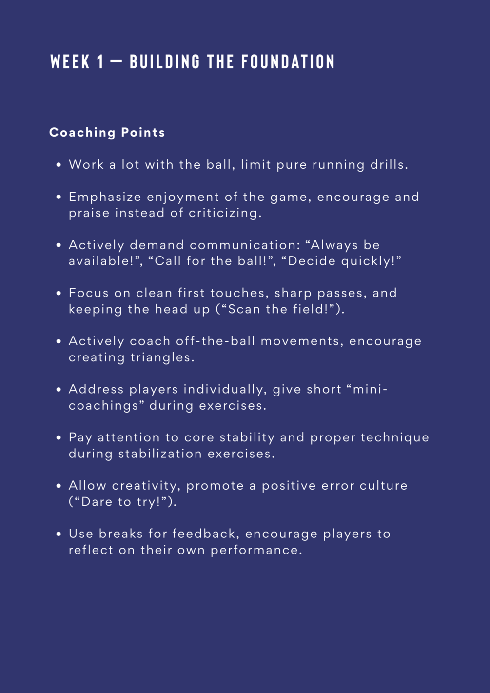 You will receive a clear structure, flexible content, concrete exercises, and checklists to help you prepare your team in the best possible way for the season.