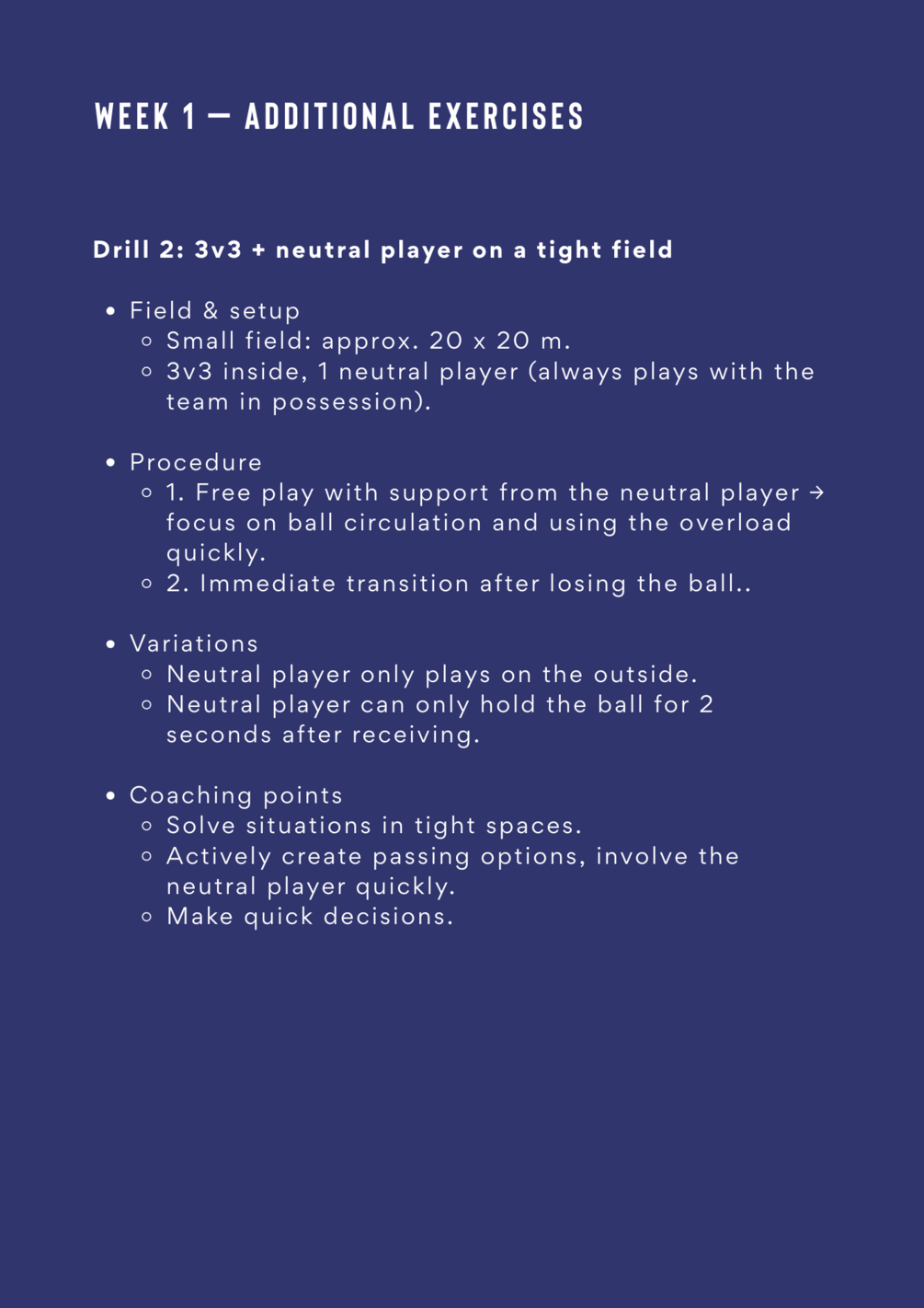 This 4-week plan is specifically designed for amateur and semi-professional teams that train 2 or 3 times per week.